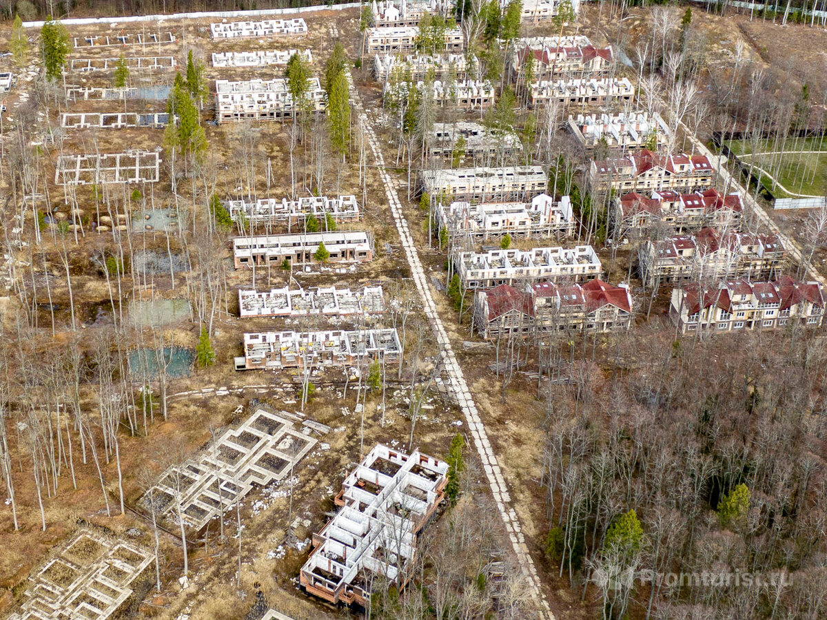 Вот представьте, в глухом лесу, относительно недалеко от Москвы находится заброшенный почти готовый посёлок с шикарными и премиальными коттеджами, дорогущими домами да и еще с таунхаусами. Естественно, что этот посёлок медленно разворовывают и растаскивают на строительные материалы.
