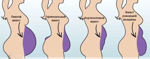 2) Гармональный живот - который растет из-за нарушения баланса женских и мужских половых гормонов: тестостерона, эстрогена и прогестерона. Главное, что нужно помнить - гормоны строятся из того, что вы получаете с питанием. И с помощью него можно наладить обменные процессы и скомпенсировать гормональный фон.