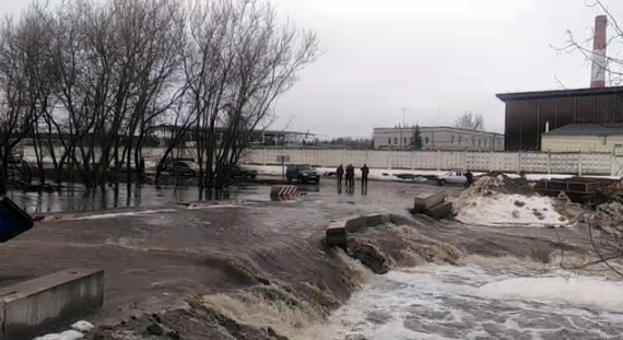 Толщина воды - около полуметра. Проезд тяжёлой техники разрешён, на легковом авто практически невозможен. Сообщение о затоплении моста на пост МЧС поступило в 6 утра. Спасатели говорят, что ещё в полночь ситуация была стабильной, однако активное таяние снега пошло с восходом солнца в 5 утра.
