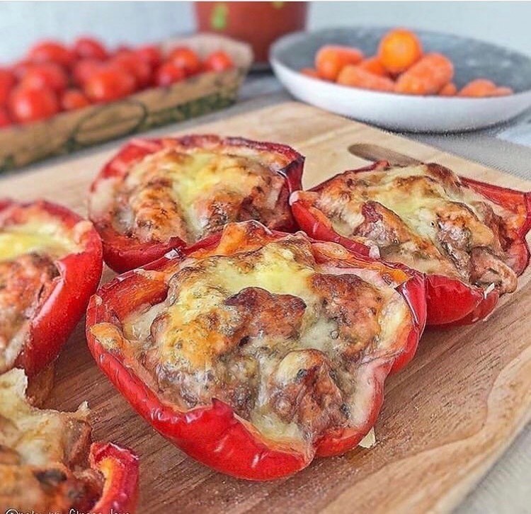 3. Накладываем куриную начинку в перцы, посыпаем сверху тертым сыром и убираем в духовку на 180* примерно на 30 минут.