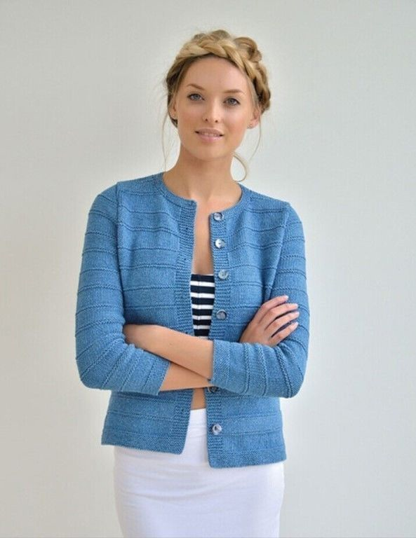 Жакет рекомендуется вязать из пряжи Rowan Priginal Denim ((100% хлопок; 90 м/50 г). Имейте ввиду, что эта пряжа садится после стирки.