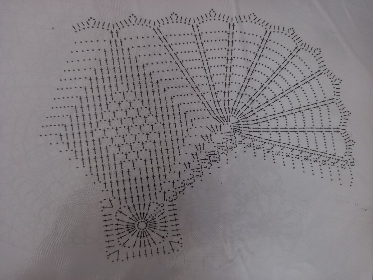 Как Вы можете заметить, никаких сложных элементов в ней нет. А сейчас покажу уже готовую салфетку связанную по этой схеме: