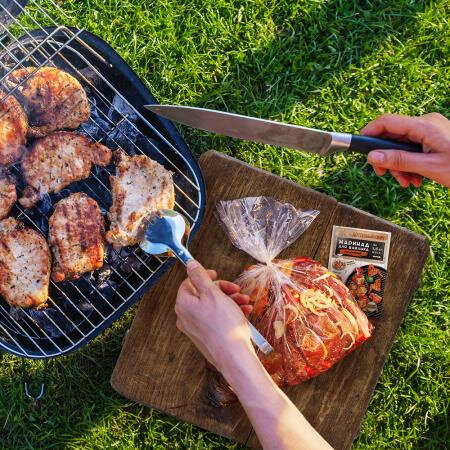 Сухие маринады серии Great BBQ помогут легко и быстро замариновать мясо. Для этого подойдет любое мясо на ваш выбор. Вам понадобится вода или масло, чтобы развести пряную смесь. Необходимо натереть мясо и оставить на 1,5 часа мариноваться.