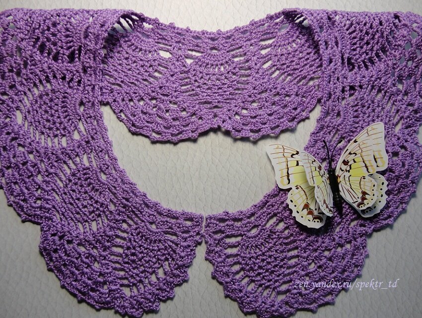 Фиолетовый ажурный воротничок крючком. Идеи для вязания.
