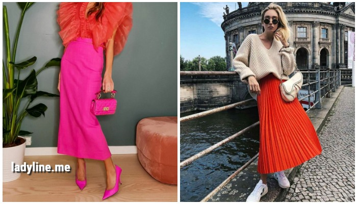 Колоритные принтованные, а также однотонные макси юбки в этом году можно «подружить» с майками или оверсайз футболками, а также светлыми кедами — в результате у вас получится стильный кэжуал образ.