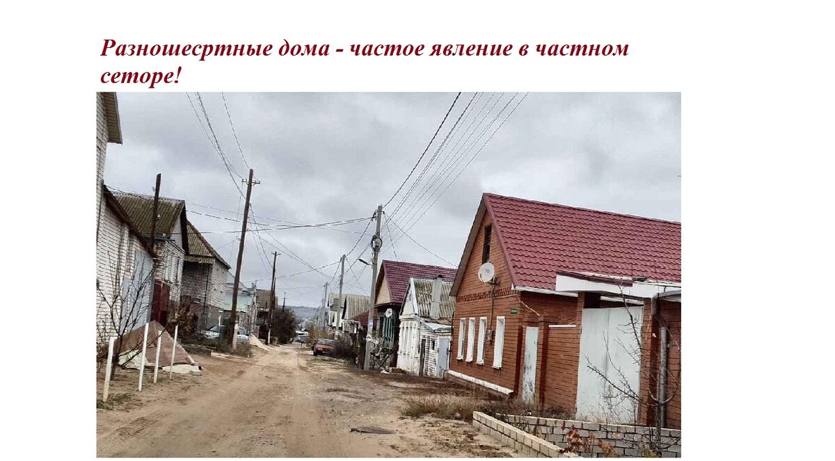 Бывает заходишь в частный сектор и видишь: дома, построенные почти впритык к друг другу, второй мансардный этаж с одной половины дома, крыша оного еще сделана так, без учета интереса соседа: снег падает к соседу, дождь льется рекой тоже к соседу. И сразу понятно - дружно живут!))
