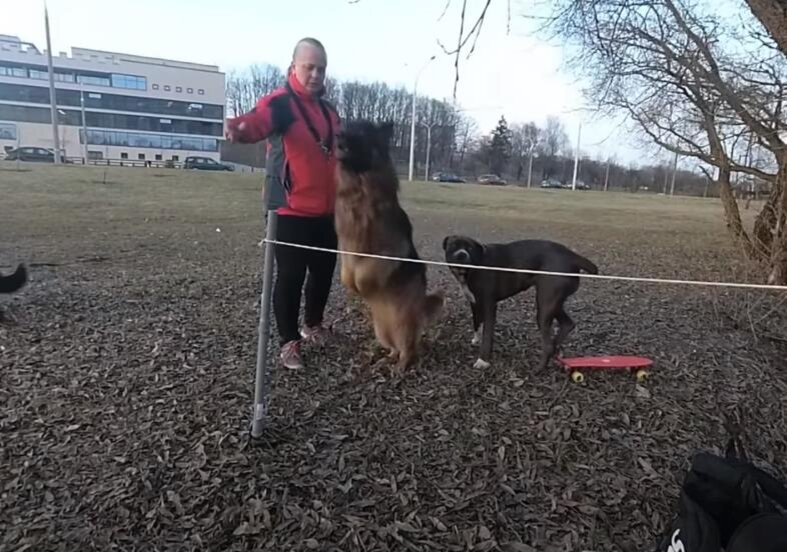 В условиях нашего района, где нет нормальной #площадки для собак, приходится импровизировать. Я сильно не заморачивалась, а просто зашла в строительный магазин и купила две сантехнические трубы, которые вставляются друг в друга. Дома взяла верёвку и садовую лопатку. Соединила это вместе в