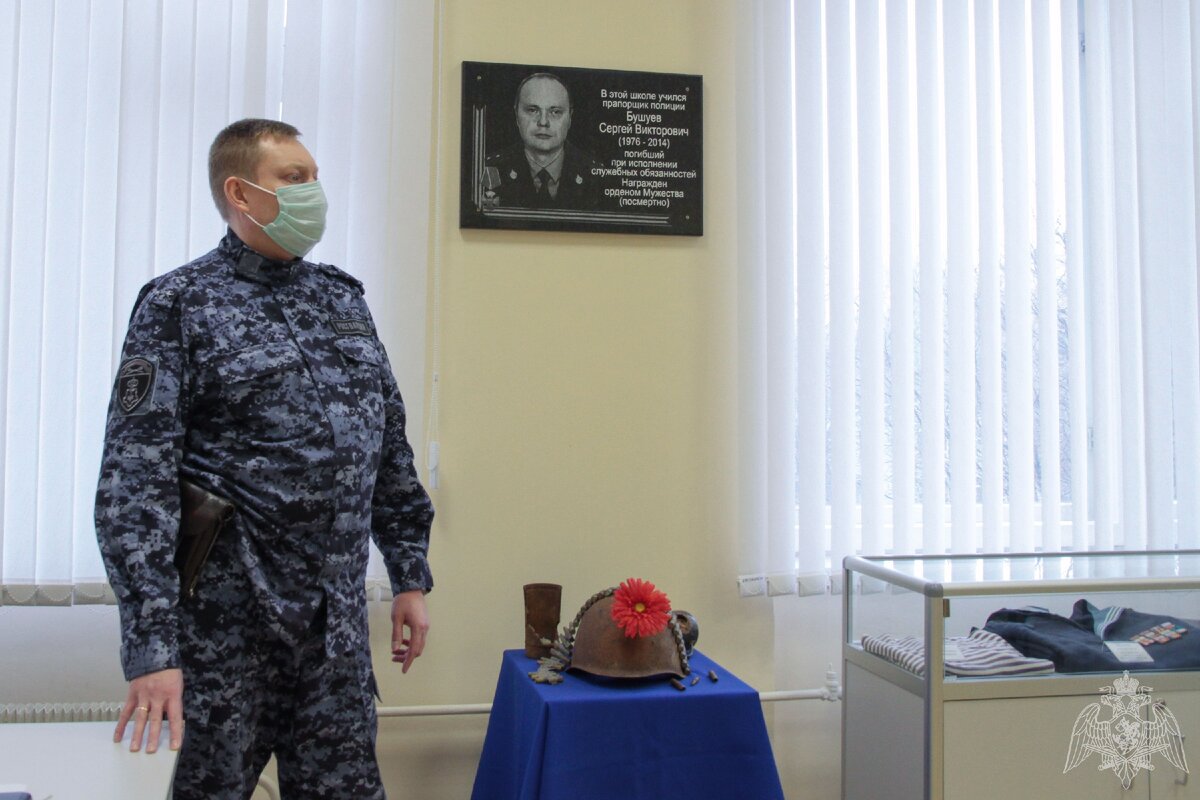 Сотрудники вневедомственной охраны Главного управления Росгвардии по городу Москве провели урок мужества для учеников школы № 1411, в которой учился их коллега Сергей Бушуев, героически погибший при выполнении служебных обязанностей.