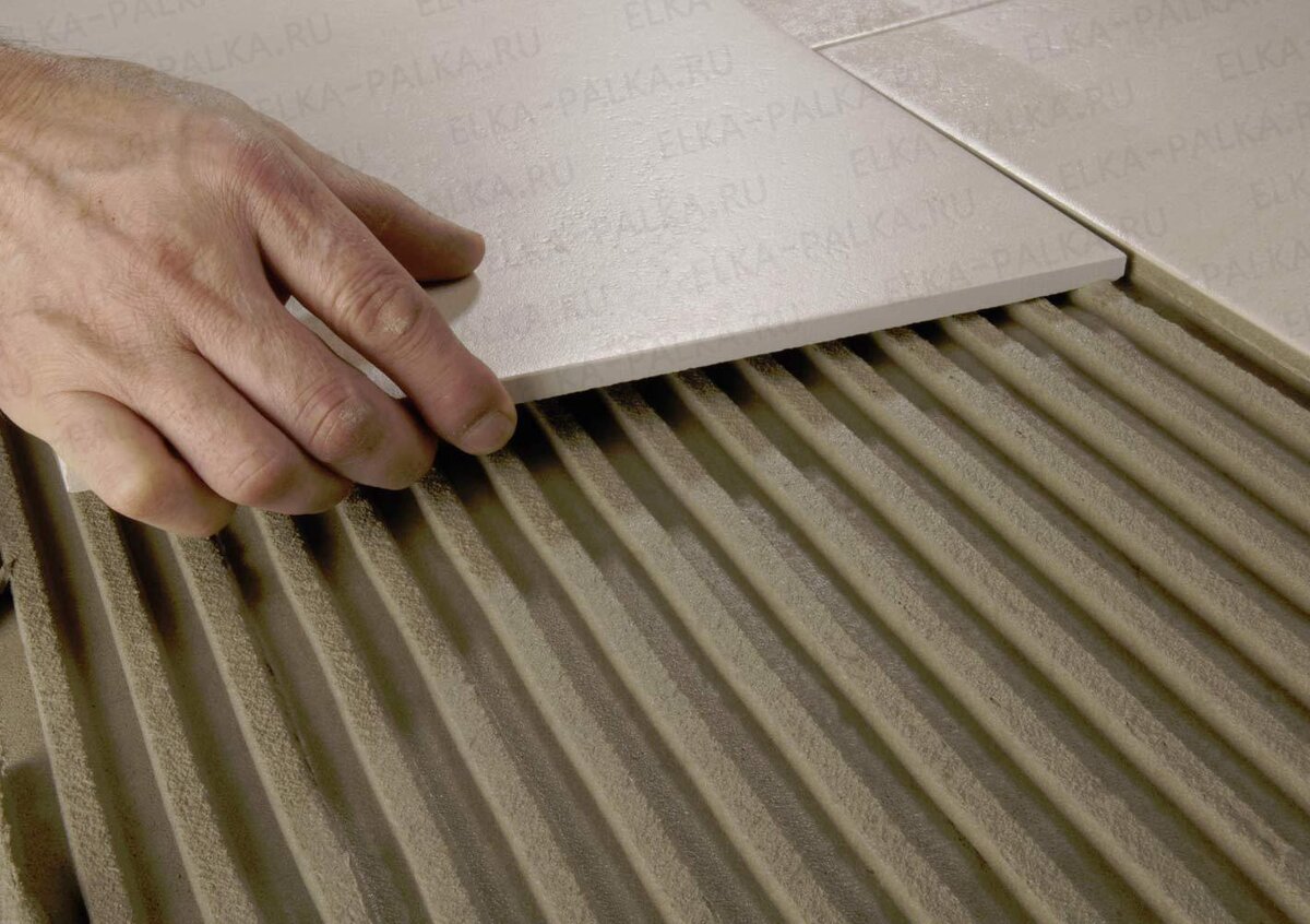 Если возникает необходимость в приклеивании крупноформатной плитки, то необходимо для усиления эффекта и надежности промазывать клеем стену и обратную сторону плитки. Недостатки у этого клея тоже есть – не подходит для теплого пола. Клей отлично замешивается, и в процессе рассасываются все комочки.
