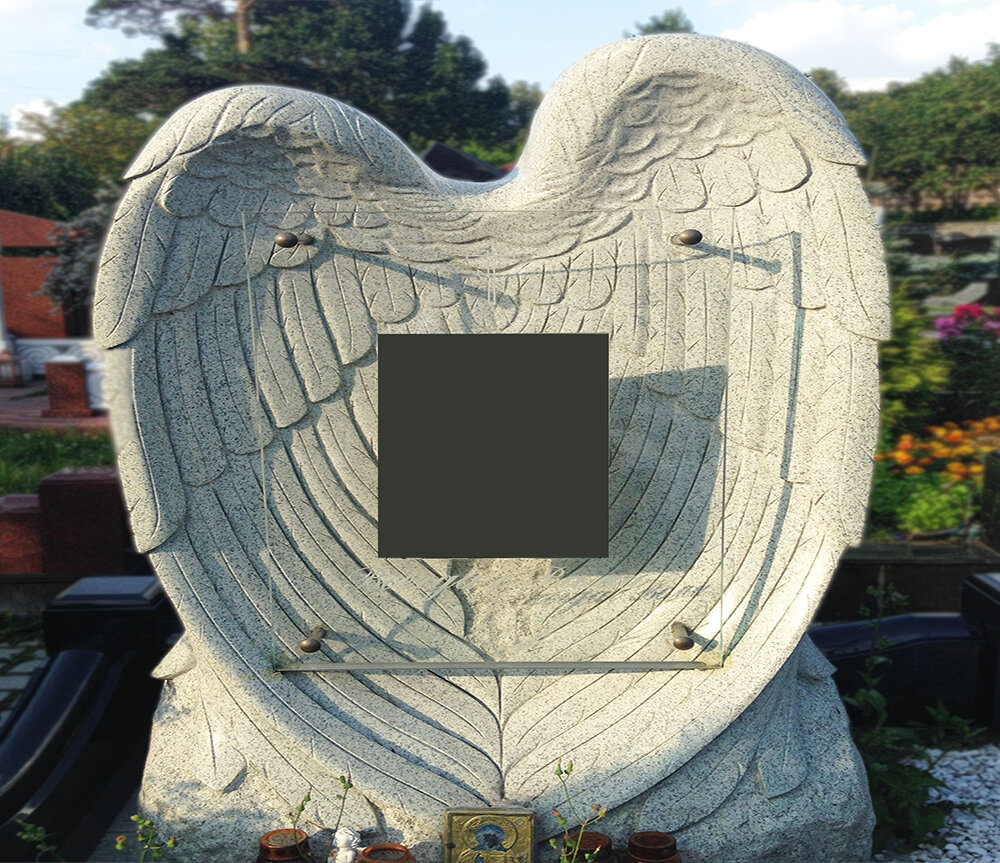 Мы можем нанести крылья на мраморный памятник, по новой технологии, разработанной на нашем производстве. Картинка будет яркой и долговечной.