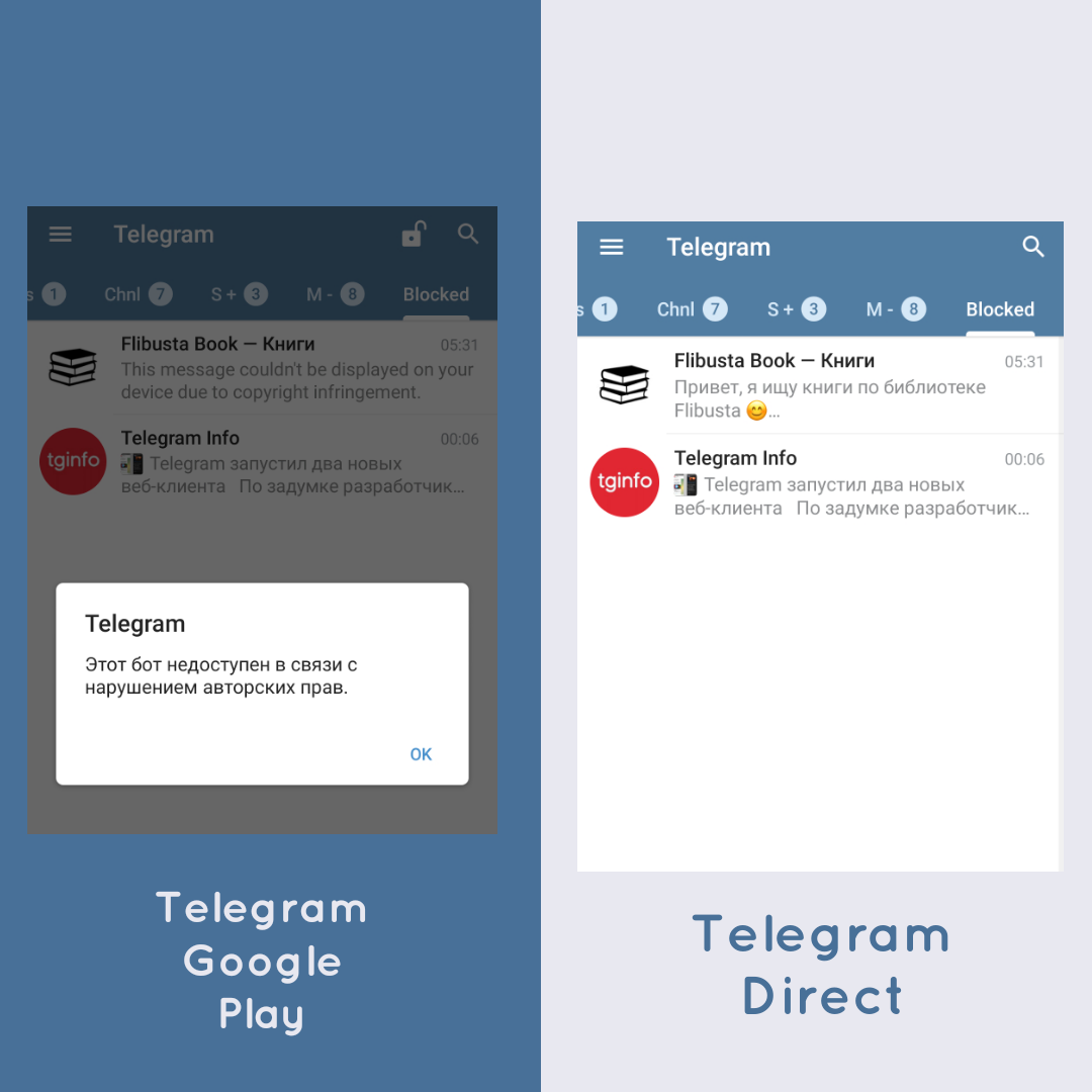 «Эта версия Telegram для Android будет обновляться чаще, чем версия из каталога Google Play», — говорится на странице клиента.
