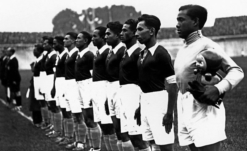 Спросите, это что за страна такая? Всё просто. Так до войны именовалась Индонезия. Сборная этой страны сыграла на турнире во Франции всего один матч. Группового этапа тогда не было и на чемпионате сразу шли матчи на вылет. Индонезийцы в 1/8 финала попали на будущих финалистов, сборную Венгрии, которым проиграли с крупным счетом 0:6.