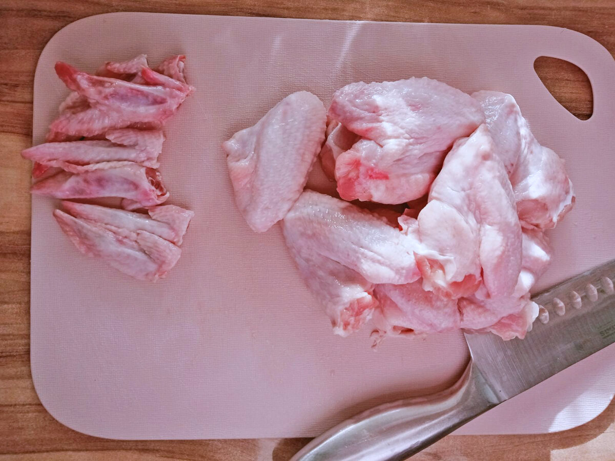 Крылышки промыть и просушить на бумажном полотенце. Отрезаем первую фалангу.
