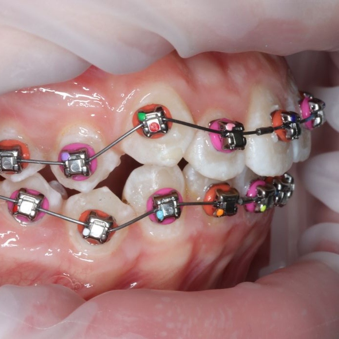 На фото брекеты скрышечками (самолигирующие), но это не помешало нам разнообразить цветовую гамму весны)