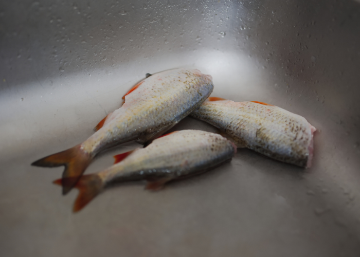 ✔ С очисткой рыбы проблема бывает не только в чешуе, а ещё и в том, что рыба скользит в руках. Поэтому если рыба скользкая, я просто окунаю пальцы рук в миску с солью — таким образом проблема легко решается!