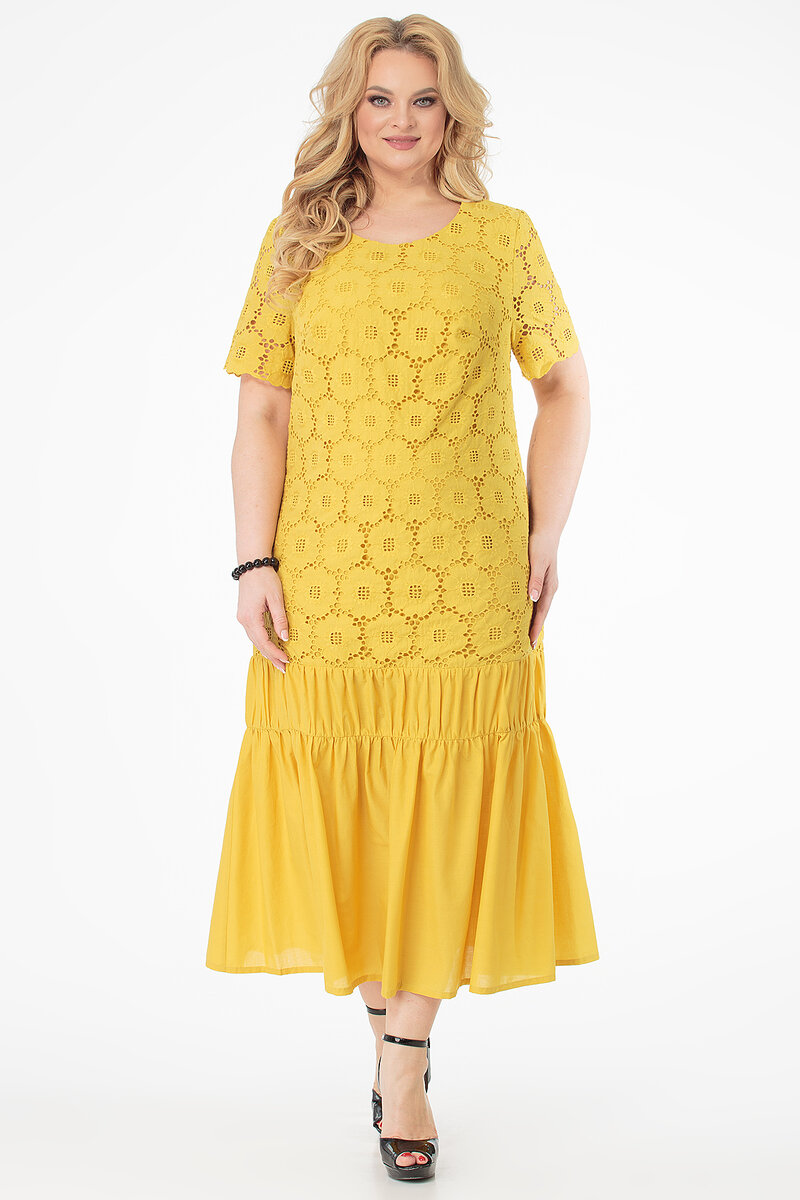Начнём с солнечного платья в двух вариантах с разным пошивом волана.