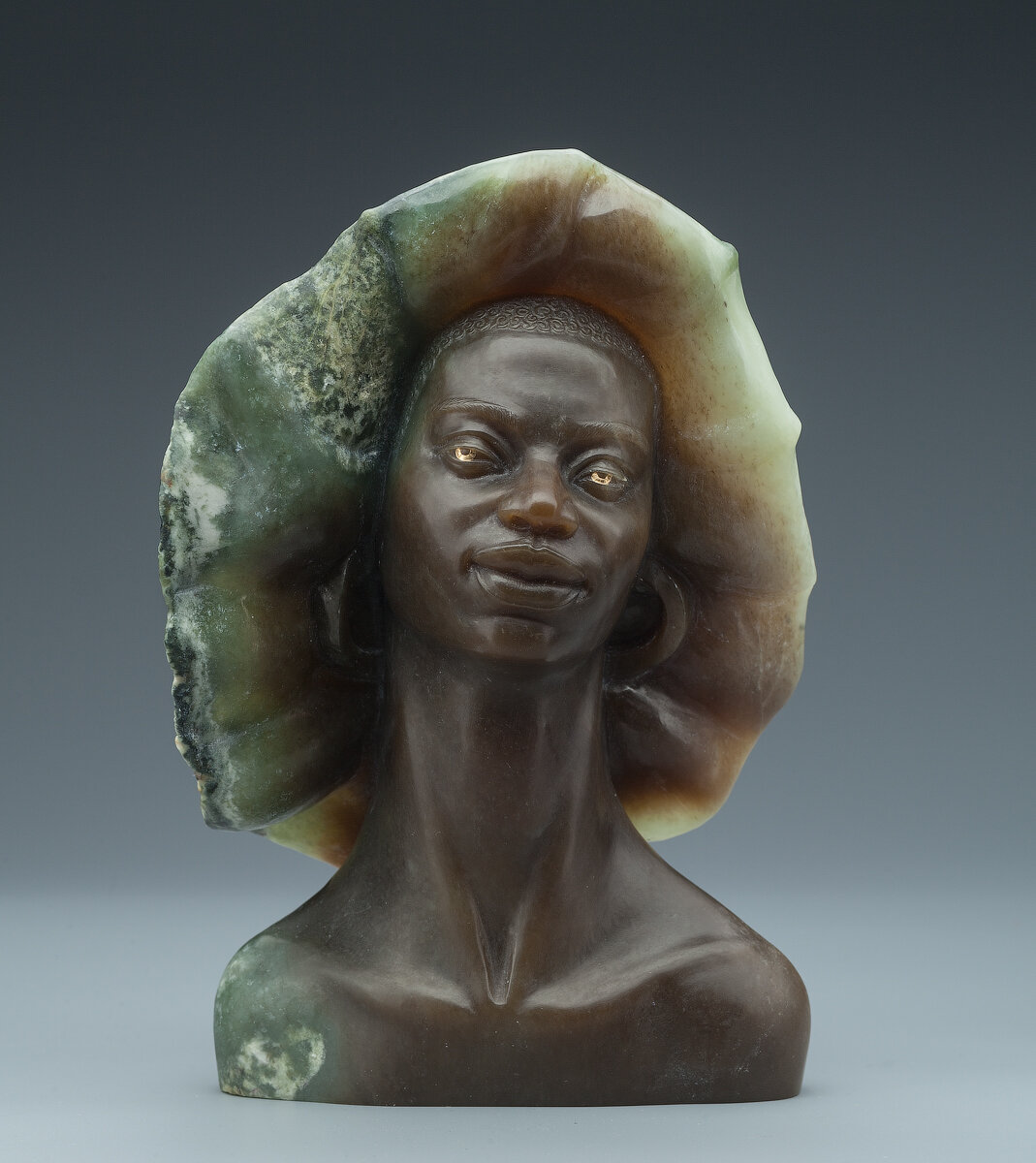 Изделие из камня: Гелия (Солнечная). От греческого слова Helios- Солнце. Материал: нефрит, металл. Размер: в.155 мм. Вес: 2160г. 2020 год.