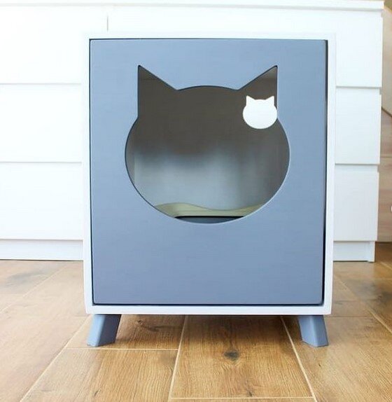 Мы с мужем уже давно пытались решить проблему с тем, что лоточек Ричарда (простите за откровенность) стоит прямо на кухне. Да, он как бы спрятан и тихонько стоит себе в уголке, но в целом его заметно. Другого места для него не нашлось. И мы думали как бы его спрятать получше, как вдруг я наткнулась на рекламу одной небольшой семейной мастерской, которая делает специальные тумбы, которые и маскируют лоточек! Тумбы к тому же красиво оформлены, а наверху можно поставить цветы или какие-то аксессуары.