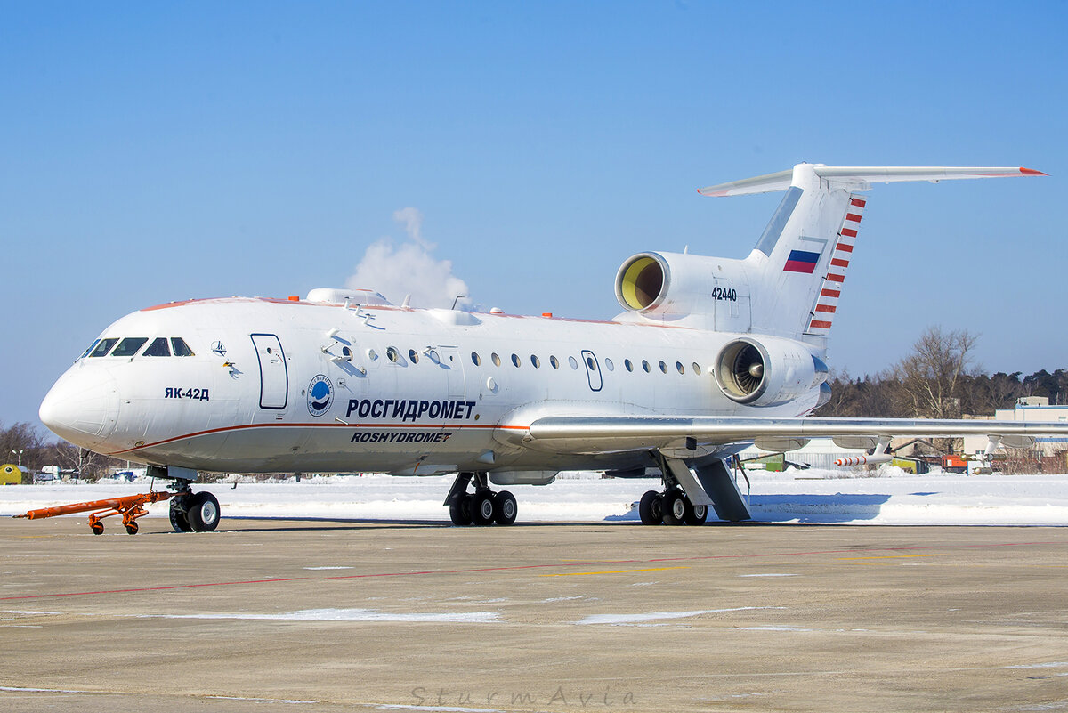 Самолет-лаборатория Як-42Д «Росгидромет» RA-42440 (заводской номер 45204224210018 и серийный 18-10) был выпущен как стандартный пассажирский Як-42 на Саратовском авиазаводе в 2002 году.