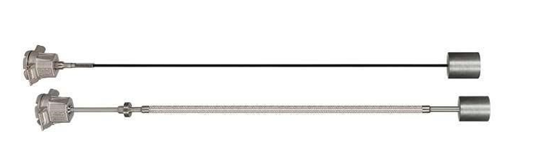 Чувствительный элемент (ЧЭ) выполнен в виде кабеля в оболочке с антистатическими свойствами. Внутри(ЧЭ) располагаются ТСП. В нижней части ЧЭ для обеспечения натяжения крепится груз. В верхней части ЧЭ приборов за пределами резервуара в литом корпусе установлен ПП из нержавеющего стального сплава DIN 1.4408.
