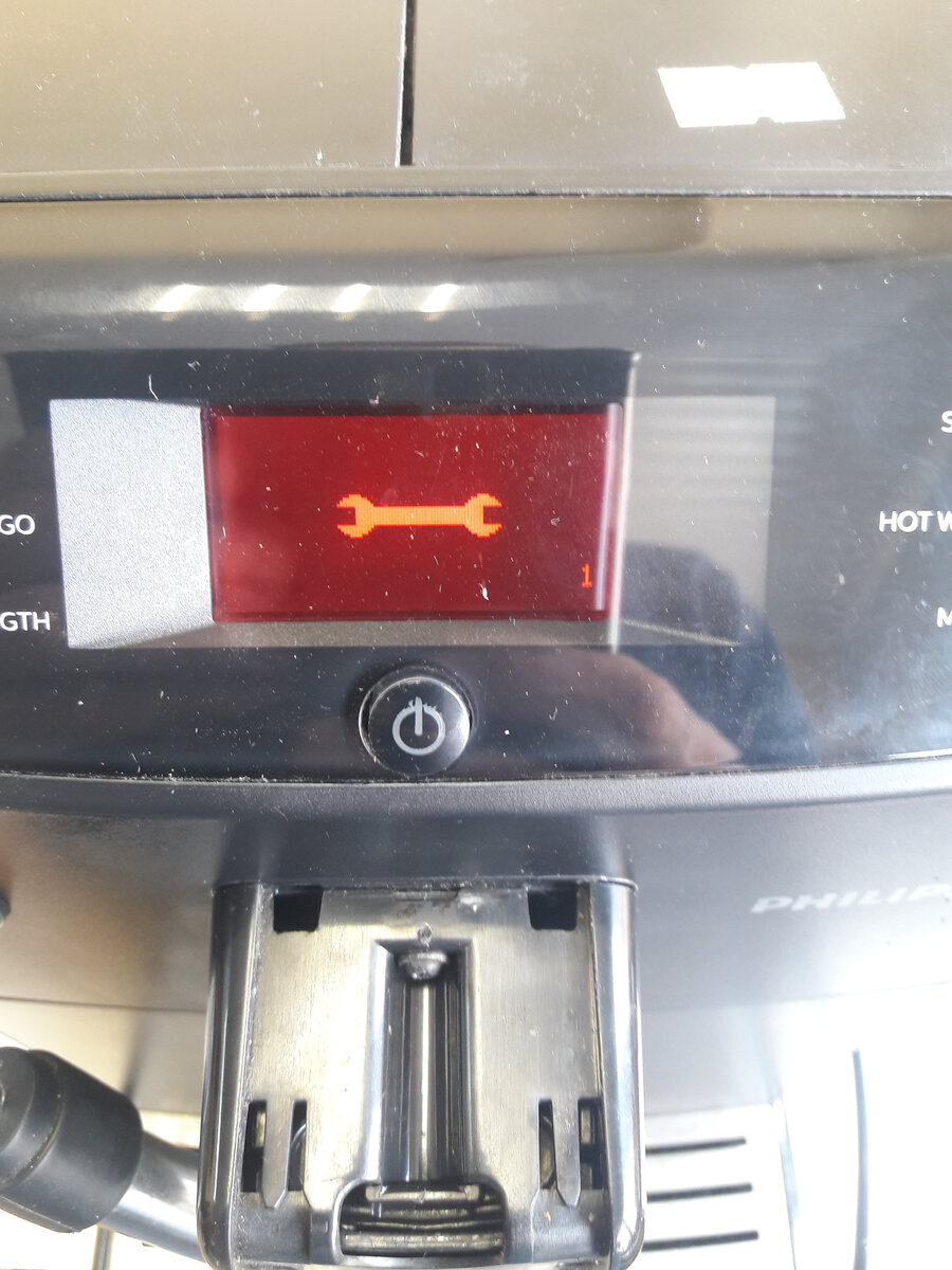 Сегодня у нас на ремонте кофемашина Philips ( Saeko) HD8826 с дефектом, при начале приготовления кофе загорается красный ключ и циферка 1. Молотый кофе готовит.