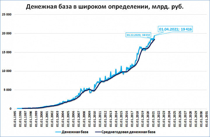 Вышли данные по широкой денежной базе, на 1 апреля она составила 19,4 трлн. рублей.