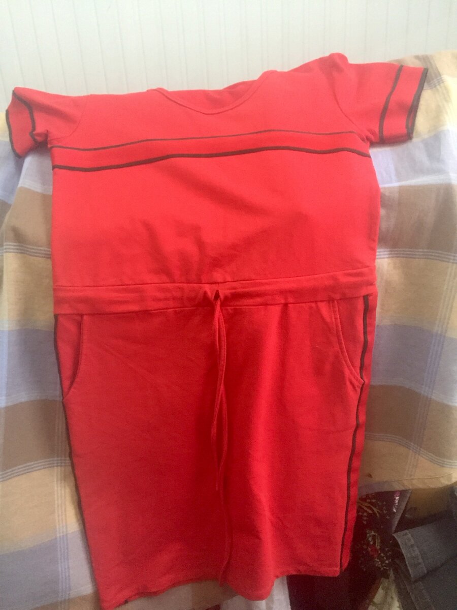Платье хорошего качества, т.к. трикотаж плотный, и видно что он не растянется после первой стирки, да и состояние вроде тоже ничего, но фасончик у него, честно говоря не ахти, очень уж старомодный, да и сидит оно на мне как на вешалке)))