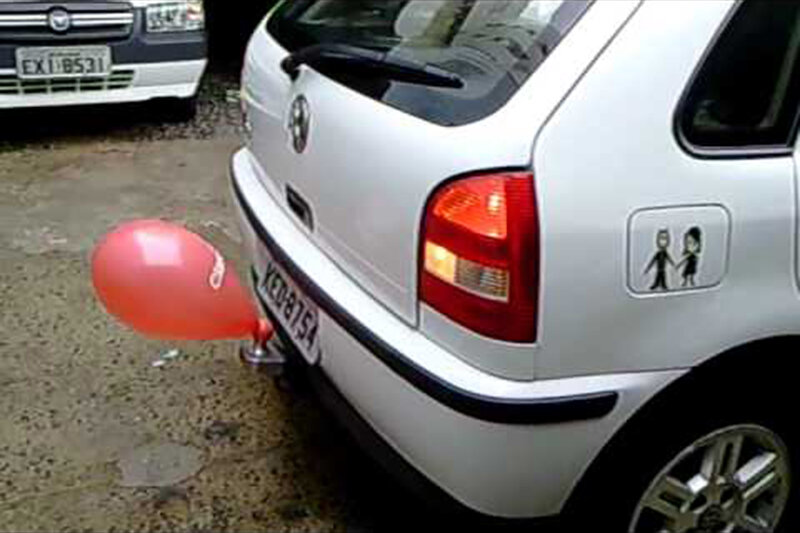 Все, что вам нужно, — это воздушный шарик, который нужно прикрепить к середине заднего бампера. Залог безопасности: смело двигайтесь задним ходом прямиком в кирпичную стену, пока шар не лопнет. А поскольку формы современных шаров различны (от собак до суперменов), то мы имеем безграничные возможности персонализации. Только не привязывайте слишком много, иначе ваша машина просто улетит.