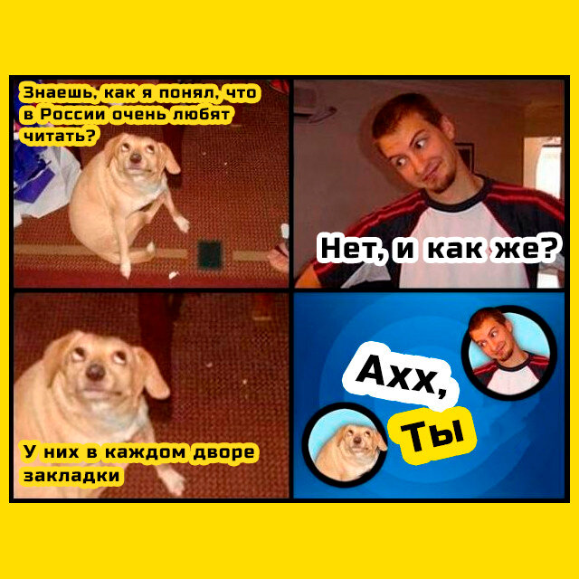 → Отдельный альбом с мемами про собаку, которая рассказывает дурацкие шутки как обычно хранится на «МемПро».