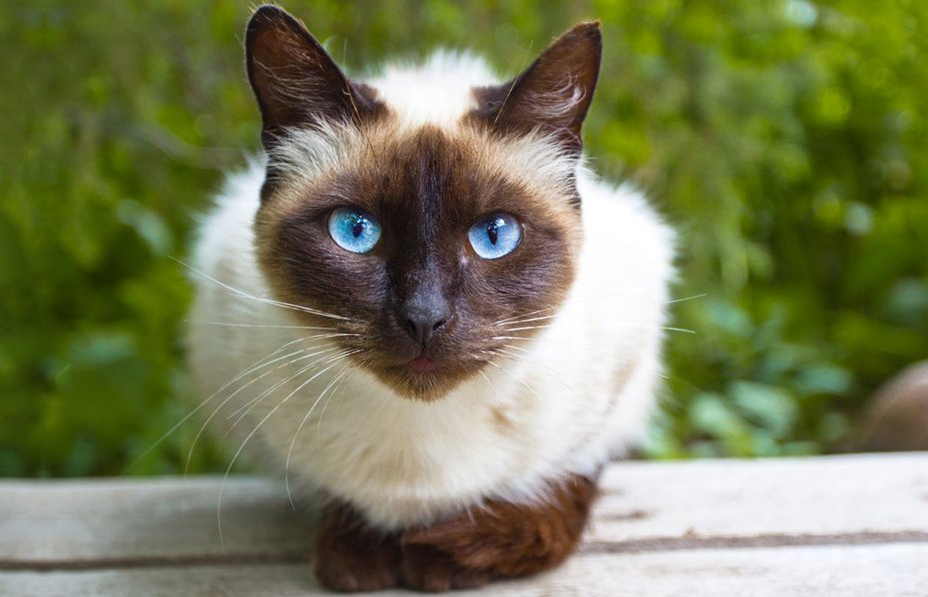 - Сиамские кошки легко узнаваемы благодаря контрастному окрасу и выразительным бирюзовым глазам.