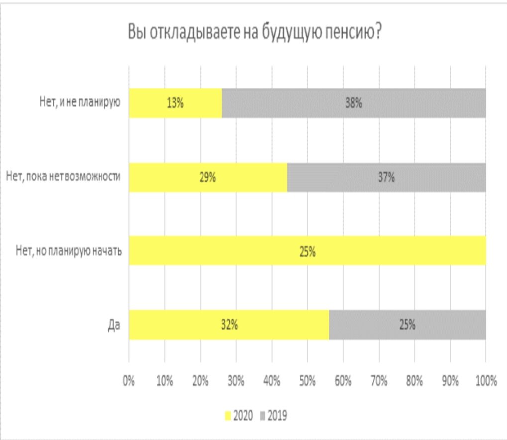 Около 30% жителей России не имеют возможности откладывать средства на пенсию, согласно результатам опроса Райффайзенбанка 2020 года.