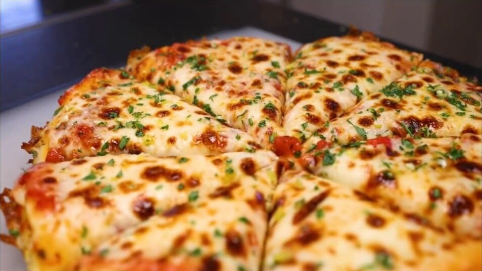 Возьмите 25 см сковороду с антипригарным покрытием (вместо этого можно использовать чугунную сковороду) и залейте оливковым маслом настолько, чтобы покрыть дно. Добавьте немного трав для пиццы и щепотку соли. Перенесите поднявшееся тесто на сковороду и разровняйте его кончиками пальцев, обязательно растягивая его немного шире, чем вы хотите (он немного сократится). Натрите тесто на сковороде небольшим количеством оливкового масла и дайте ему снова подняться на сковороде (не менее 30 минут).