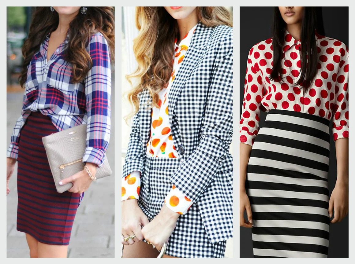 Комбинации разных рисунков - практикуют люди творческие. У них отсутствуют рамки и стереотипы. Требуется специальная подготовка :)