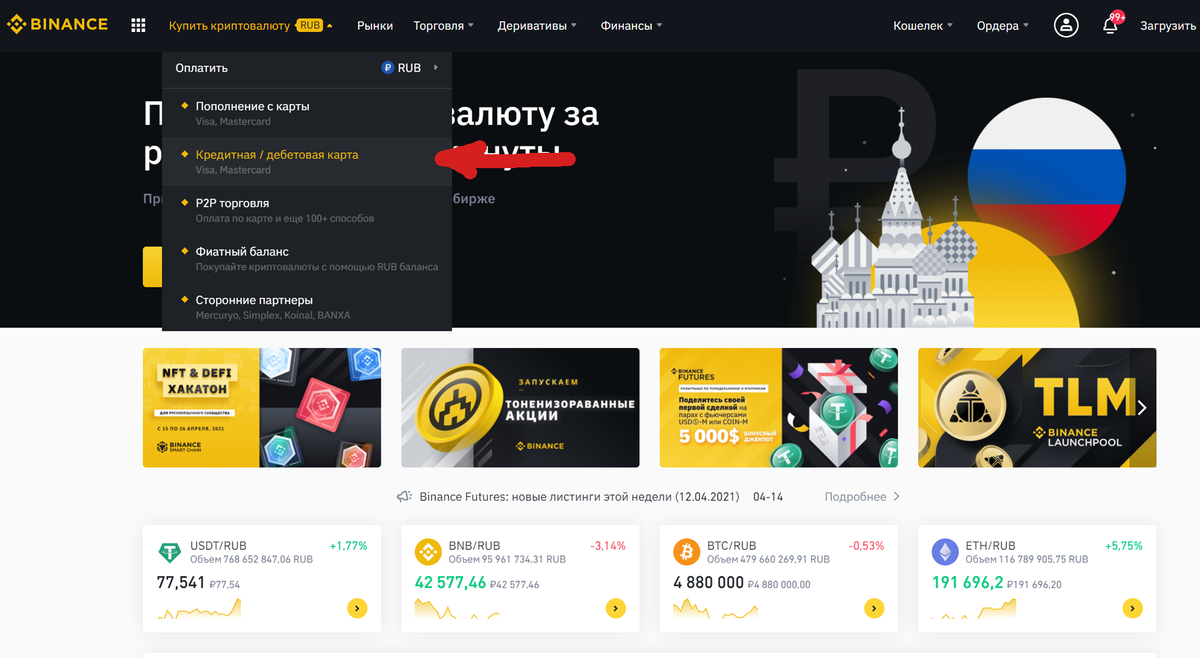 Теперь можно купить любую монету, которую позволяет биржа BTCRUB, BNBRUB, USDTRUB и т.д. Мы покажем на примере USDT.