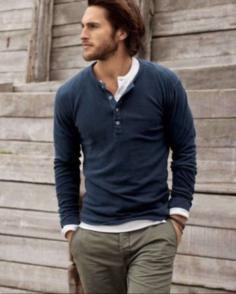 Раньше рубашка хенли была своего рода нижним бельём, сверху обычно надевали жилет и блейзер.