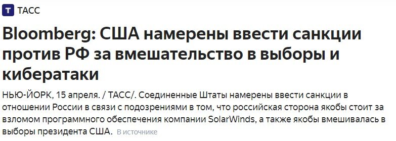 Сегодня ночью вышла новость о том, что СМИ узнали о планируемом введении американских санкций за кибератаки и вмешательство в выборы США. Об этом сообщили мировое информационное агентство Bloomberg и американская газета New York Times.
