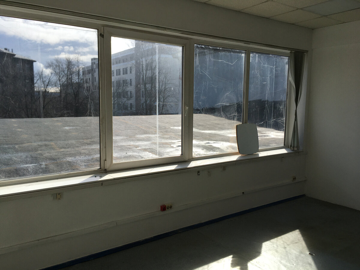 Офисные приключения Когда мы только переезжали в городской офис от предыдущих арендаторов на окнах осталась тонировочная пленка. То ли она изначально была поклеена криво, то ли от времени и климата пошла пузырями, видок у окон был так себе. Причем целесообразность ее поклейки тоже под вопросом: какого-либо сильного затемнения она не давала, солнечный свет пропускала практически в полном объеме, да и расположение окон на юго-восток означает, что прямо в окна солнце светит только до 10-11 часов. В любом случае мириться с этой ерундой на окнах мы не стали и решили ее отодрать. Но не тут-то было. Тех, кто клеит на пластиковые окна тонировочную пленку, наверняка ждет отдельный котел в преисподней. Сама пленка снялась достаточно быстро. Но весь клеевой слой от нее остался на стекле. Механически его не удалить: скребок просто не цепляет, оставляя на слое царапины. Бытовые средства для очистки стекол бесполезны. Даже уайт-спирит просто не берет этот клей: ни намека на растворение. Теперь пр