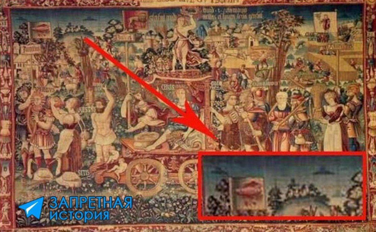 Он знаменит тем, что изображает очень похожие на НЛО объекты, которые зависли в небесах. Судя по многочисленным изображениям летательных аппаратов на этой и других картинах, и даже упоминания в библии, древние