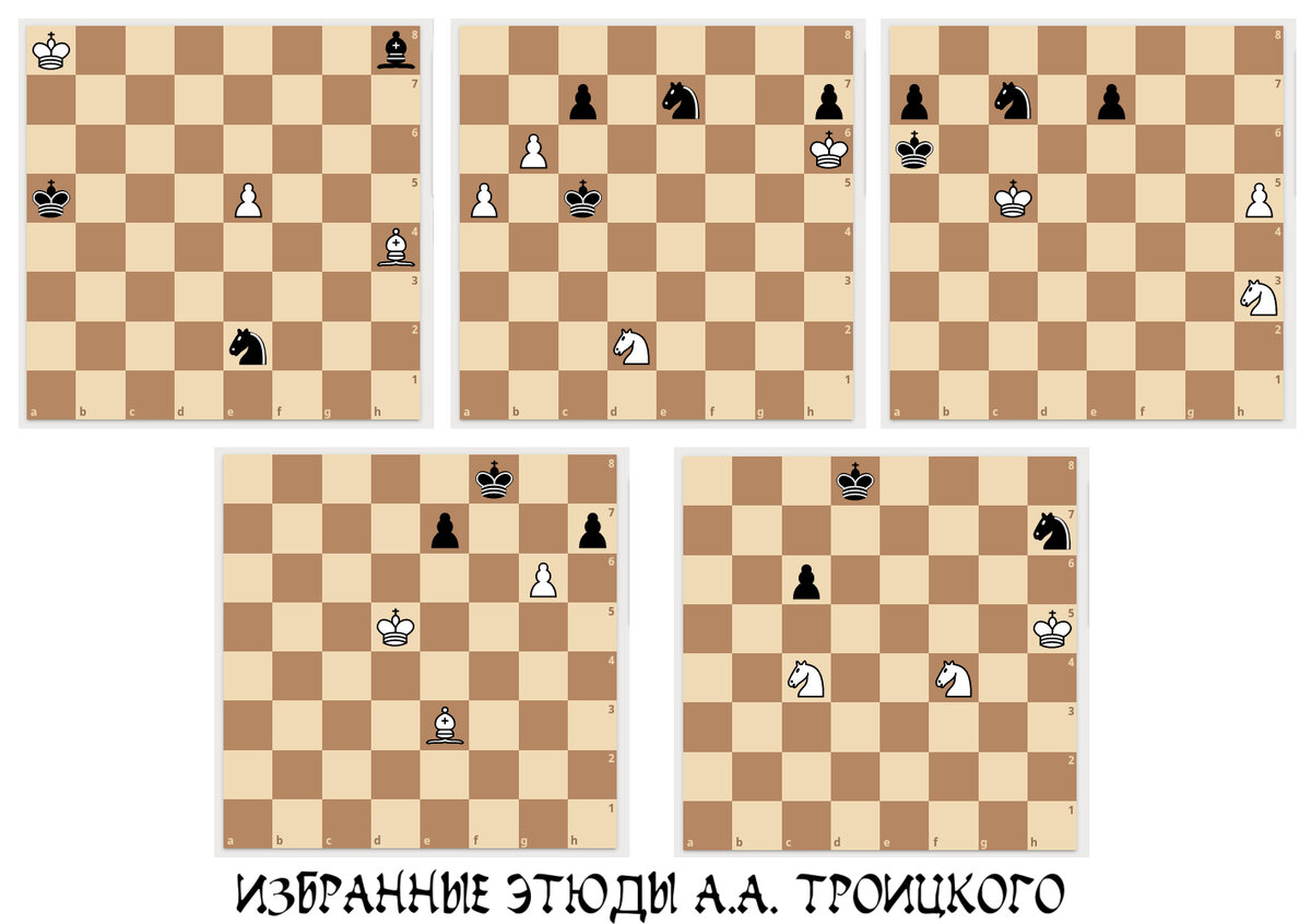 Задачи взяты из книги В.А. Королькова и В.А. Чеховера "Избранные этюды А.А. Троицкого".