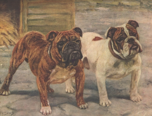 Вот весьма эмоциональное описание бульдога, сделанное капитаном Томасом Брауном в 1829 году: « Его голова широкая, его нос короткий, с широкими ноздрями, нижняя челюсть выдается далеко вперед, что придает ему свирепый вид. Его глаза поставлены далеко в стороны и создают подозрительный, злобный взгляд. Зубы, которые видны снаружи, создают впечатление, будто он скалится, хотя на самом деле он совершенно спокоен. Он самый жестокий из всего собачьего рода в мире. Он чувствует себя важным, потому что знает, что победит в схватке с другим животным. Бульдог – одна из самых оригинальных собак Британии. По классификации он может быть поставлен в ряд с пастушьими собаками и ирландским грейхаундом ».
