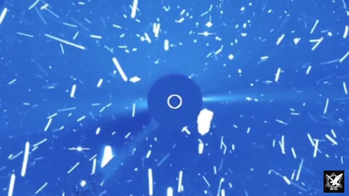 Синий круг в центре места, который НАСА скрыл, по-видимому, содержит неимоверных размеров объект, из которого вылетает это огромное количество цилиндров и иных неописуемых объектов. Кажется, что на эти так сказать аномалии даже не влияет огромная гравитация Солнца. Что-то подсказывает нам, что у этих объектов есть собственная силовая установка, типа двигателя автомобиля. С тех пор, как было получено это изображение, НАСА не делало публичных заявлений об этих таинственных объектах, возможно, из-за опасения, что общественность узнает правду о том, что мы не одиноки во Вселенной.