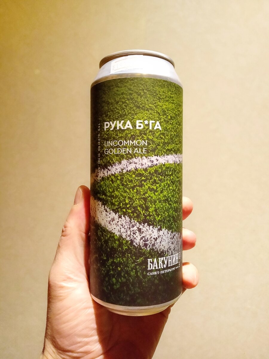 Дегустируем пиво под названием "Рука Б*га" от питерской пивоварни Бакунин. Что интересно, раньше оно называлось нормально - "Рука Бога", а теперь букву "о" зачем-то заменили звездочкой. Чтобы не оскорблять чувства верующих, что ли? Как видите, пиво заявлено в стиле золотого эля (необыкновенного притом). Впервые оно было сварено к чемпионату мира по футболу в 2014 году, а название получило в честь гола, который в 1986 году Марадона забил англичанам рукой. Где-то мне попадалась информация, что при варке данного напитка используется сушеная аргентинская хурма, но ни на банке, ни на сайте производителя о ней ничего не написано. Так что будем считать, что это чьи-то фантазии. Ладно, смотрим, что нам расскажут пивовары об этом пиве и приступаем к дегустации: Светлый, лёгкий, ультра освежающий сорт. Сварен для всех любителей футбола в честь ЧМ 2014. Цвет золотистый. Обладает насыщенным ароматом японского Sorachi Ace хмеля с оттенками лайма и зелёного чая. Такой хмель мне раньше не попадался,