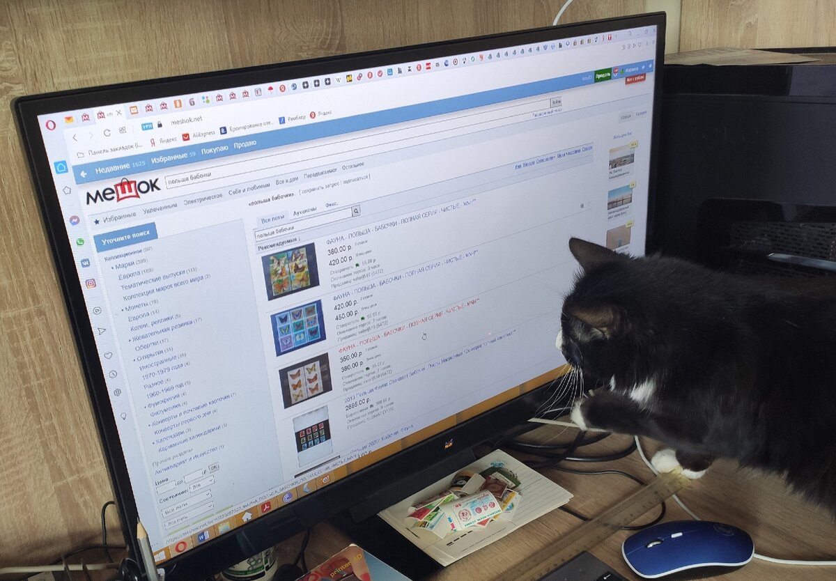 Переходим к оценке. Перед вами первый кляссер, 10-рублевый, довольно свежий, марки в нем вы посмотрели, состояние хорошее, начнем узнавать цены. В клубе за оба вам предложили 1000 рублей. Открываем сайт Мешок meshok.net (это самый большой сайт для коллекционных предметов). Второй по величине (не Авито, как можно предположить) - auction.ru (но ассортимент здесь победнее и покупателей поменьше, однако пользоваться им тоже можно). Открываем ваш кляссер. Берём первую серию, например, злополучных польских бабочек 1977 года, которых описывала женщина выше. У вас 4 красивейших, но гашеных бабочки. Год выпуска 1977 знаю только я, не вы, на марках он не написан (такое бывает нечасто, но бывает. На советских марках год написан почти всегда). Надеюсь, что надпись Polska вы перевести смогли. В принципе, названия стран не должны вызывать проблем, хотя существуют марки, вызывающие затруднения в определении ее принадлежности. Например, Magyarorszag - Венгрия, Suomi - Финляндия, Osterreich - Австрия, отсутствие страны названия, но профиль головы королевы (или, реже, короля) - Великобритания и т.д. Определенные трудности могут возникнуть при отсутствии латинских букв или кириллицы (например, иероглифы или арабский язык - тут все индивидуально, возможно сами вы не справитесь, нужно извернуться и придумать свой алгоритм поиска, например, задать тематику рисунка марки). Итак, пишем в поисковой строке (в самом верху экрана, но ниже строки с адресом) «Польша Бабочки» (регистр значения не имеет, однако очень важен правильный алгоритм поиска. Надо максимально кратко и в то же время подробно описать тематику и другие характеристики марки, потому что если вы зададите в поиске «бабочка», вы получите список из десятков тысяч лотов, а если «очень красивые гашеные марки с бабочками», то может не найтись вообще ни одного лота. Оптимально: год, страна, тематика). Нажимаем кнопку «найти». Посмотрите на фото сверху – это результат поиска - множество разных польских марок по теме бабочки, а также банкноты, монеты, календарики, собственно сами сушеные бабочки на булавках и другие предметы коллекционирования. Отсекаем переоцененные (для этого нажимаем кнопку «цена», чтобы цена шла с самой низкой по возрастанию). Отсекаем монеты, календарики и др., т. е. «не марки», для чего слева в меню нажимаем строку «Марки». Находим на картинках ваши или очень похожие марки (вдруг у вас не все марки из серии), нашли первые, крутим дальше и - о-па! - выясняем, что в вашей серии должно быть 6 марок (потому что мы видим 6 разных таких же как у вас марок и там написано «полная серия»). Первые лоты в ленте поиска - рекомендованные и проплаченные, они не всегда отражают реальную цену, прокрутите ленту ниже и когда появятся лоты по 1-2 рубля, отсюда и начинайте смотреть. Мы видим, что такие бабочки, как у вас, выпущены в 1977 году (для дальнейшего сужения поиска можно добавить «1977» в поисковую строку) и продаются по 2-4 рубля за штуку. Никаких дополнительных уловок нет (а они бывают, например, продавец при сильно заниженной цене лота ставит сильно завышенную цену пересылки и/или не объединяет разные лоты, а суммирует стоимость пересылки для каждого лота – цена таких лотов для нас не важна). Полная серия в самом дешёвом варианте стоит 35 рублей (и таких вариантов 6) - это и есть ее реальная цена продажи. Цена покупки всегда меньше. Ваши 4 марки стоят при продаж