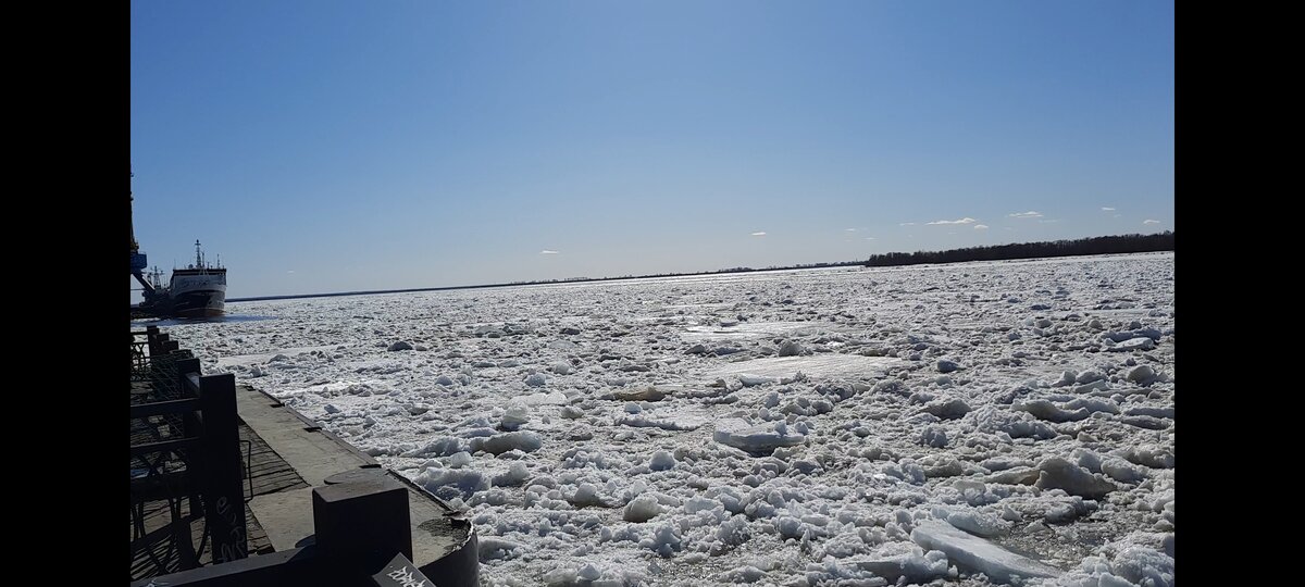Лед на реке еще стоит. Получил посылку,дружбан ждет.
