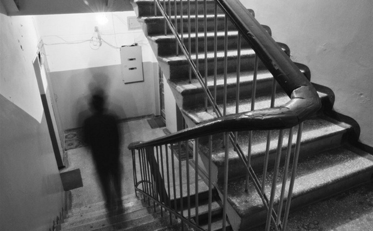 Тогда я опять подошёл к двери, чтобы удостовериться — и да, на верхней площадке можно было заметить некую тень.