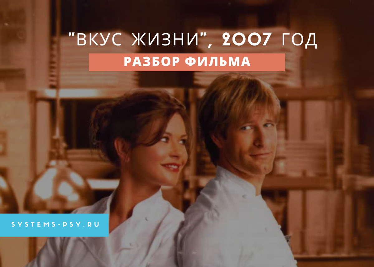 Молодая женщина Кейт - шеф-повар в ресторане. После смерти сестры Кристины ей приходится взять опеку над ее дочерью, 10-летней Зои. В это время хозяйка ресторана нанимает нового повара Ника. Кейт начинает конфликтовать с Ником. В итоге у них завязывается роман, они уходят с работы и открывают совместный ресторан. Разберем этот романтический фильм с точки зрения системной психологии.