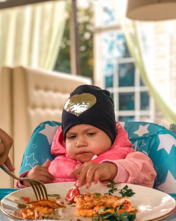 С Мией у меня не было заморочек, по поводу размельчения пищи👌🏻 Да и мне просто было лень, столько времени тратить, чтобы ребёнок попробовал пару ложек или вообще отказался есть🤪 Поэтому я давала сразу всё целиком, сколько съест, столько и съест🙈