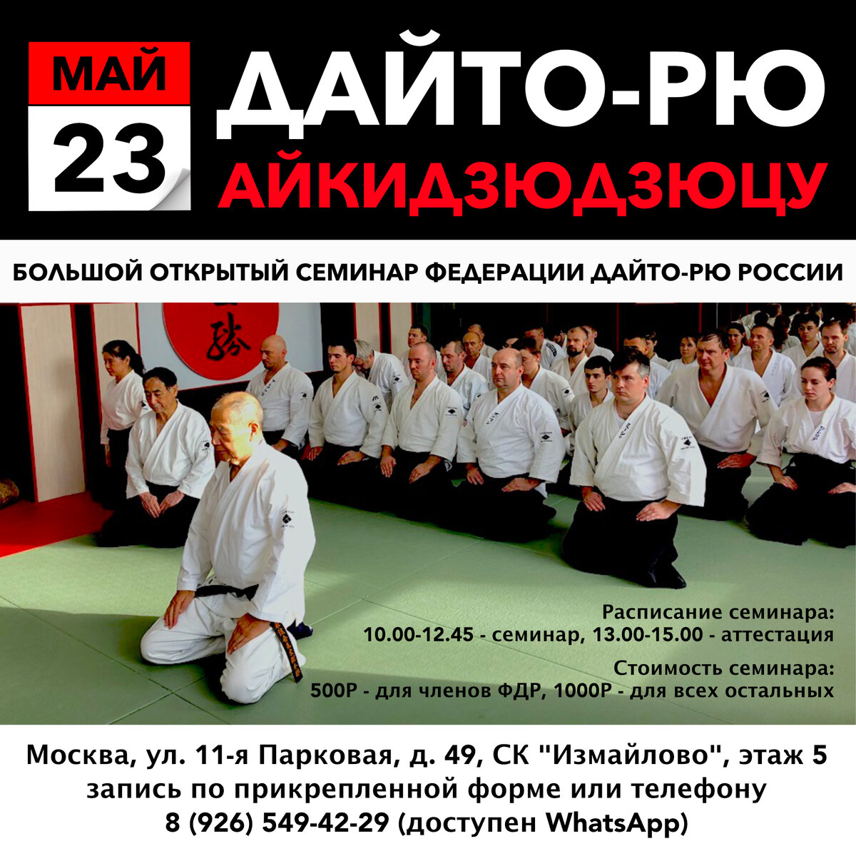 23 мая 2021 года в Москве состоится большой открытый семинар Федерации Дайто-рю России.