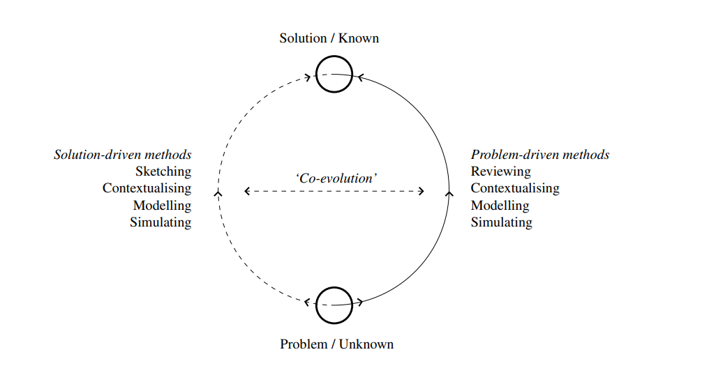 В данном контексте недостающие знания описываются формулировкой проблемы. В проектных исследованиях (например, в экономике) изучается то, что создано людьми и обозначается как «искусственная конструкция» (Simon, 1996), в отличие от уже существующих физических конструкций, которые можно наблюдать в физике, химии и других областях. биология, например. Это означает, что человеческое строительство должно произойти до того, как наблюдения и дальнейшие конструкции могут быть разработаны на основе этих наблюдений. Некоторые исследования показывают, что проектировщики ориентированы на решения, направляя свои усилия на предложение возможных решений в качестве основного метода процесса.