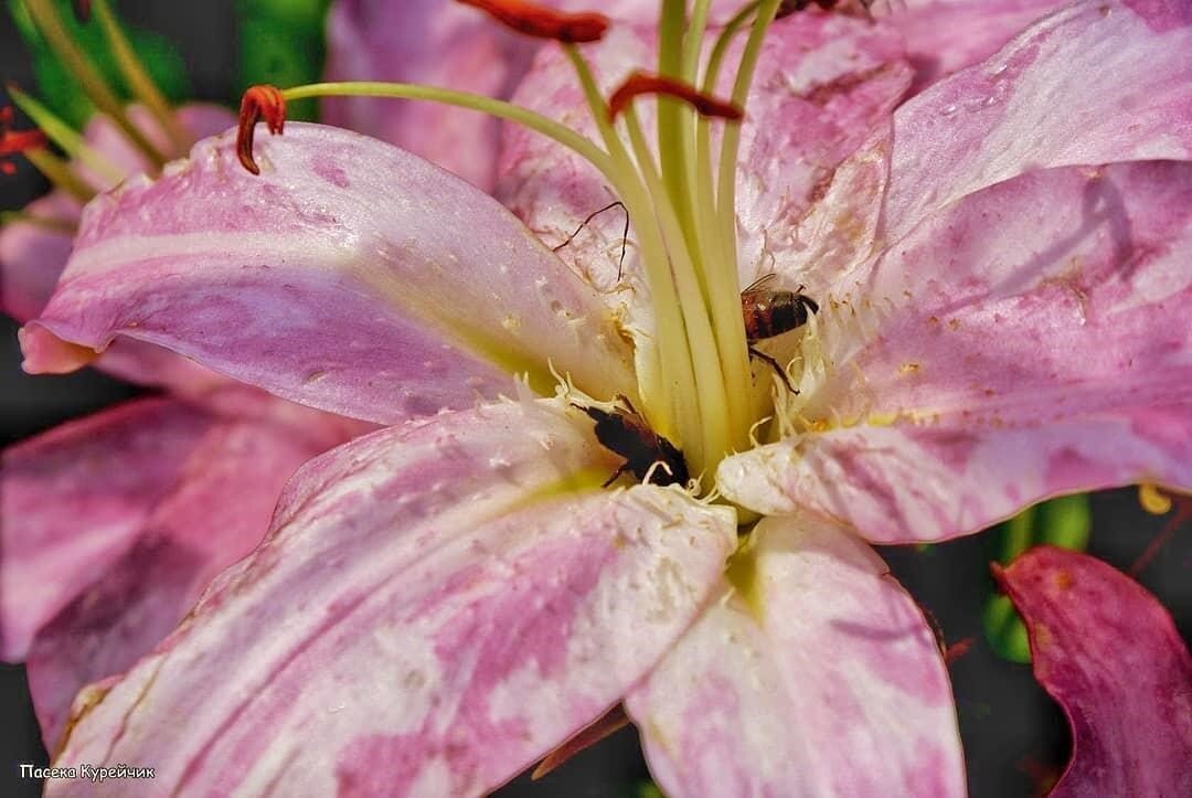 Редкий, но очень ценный. Имеет нежный вкус и тонкий аромат. В основном бесцветный и прозрачный, при посадке становится белым с перламутровым отблеском. Обладает рядом полезных свойств. Незаменим при простудных заболеваниях и содержит большое количество антиоксидантов. Особо ценен для женского здоровья, обладает омолаживающими свойствами. При одновременном употреблении внутрь и нанесении на кожу способствует улучшению ее состояния, разглаживает, делает более упругой и избавляет от недостатков, выбеливает веснушки и пигментные пятна. Ну как? Захотелось лилейного мёда или я не очень убедительна? Нашла у себя фото пчелок на лилии, почитала полезные свойства применения данного растения и готово. Это я сделала за 10 минут, если постараться, можно и покруче описание придумать. Это я к чему: покупатели, всегда задумывайтесь, когда слышите красивые названия. У большинства из вас с собой интернет в кармане и все можно уточнить. Я была наслышана о хлопковом мёде, но когда загуглила, оказалось, что так называют взбитый мёд (крем - мёд). Зачастую он же царский бархат, лох серебристый и мёд с маточным молочком. В самом крем - меду нет ни чего вредного, но мне лично еще не попадался ни один приезжий ярмарочный торгаш, который торговал бы крем - мёдом, сделанным из мёда. В основном это кондитерский заводской продукт. Когда у меня спрашивают, как отличить мёд от фальсификата, я отвечаю ни как, кроме лаборатории. Еще я советую найти своего пчеловода, которого, в случае чего, вы можете найти. Ярмарочного! приезжего! торгаша вам не отловить и ни чего не предъявить. Если покупаете в интернете, то лучше отдавать предпочтение личным блогам, что бы вы видели с кем имеете дело, где регулярны посты о работе на пасеке. Когда там одна фотка с позированием на фоне пасеки и с рамкой, это не в счет. Ну и понаблюдайте за блогом или страницей подольше. В свою очередь и пчеловодов призываю делать побольше публикаций о нашей с вами нелегкой работе, что бы люди понимали как мёд достаётся. Ведь многие до сих пор думают, что пчеловод поставил ульи и только успевает мёд по банкам фасовать.
